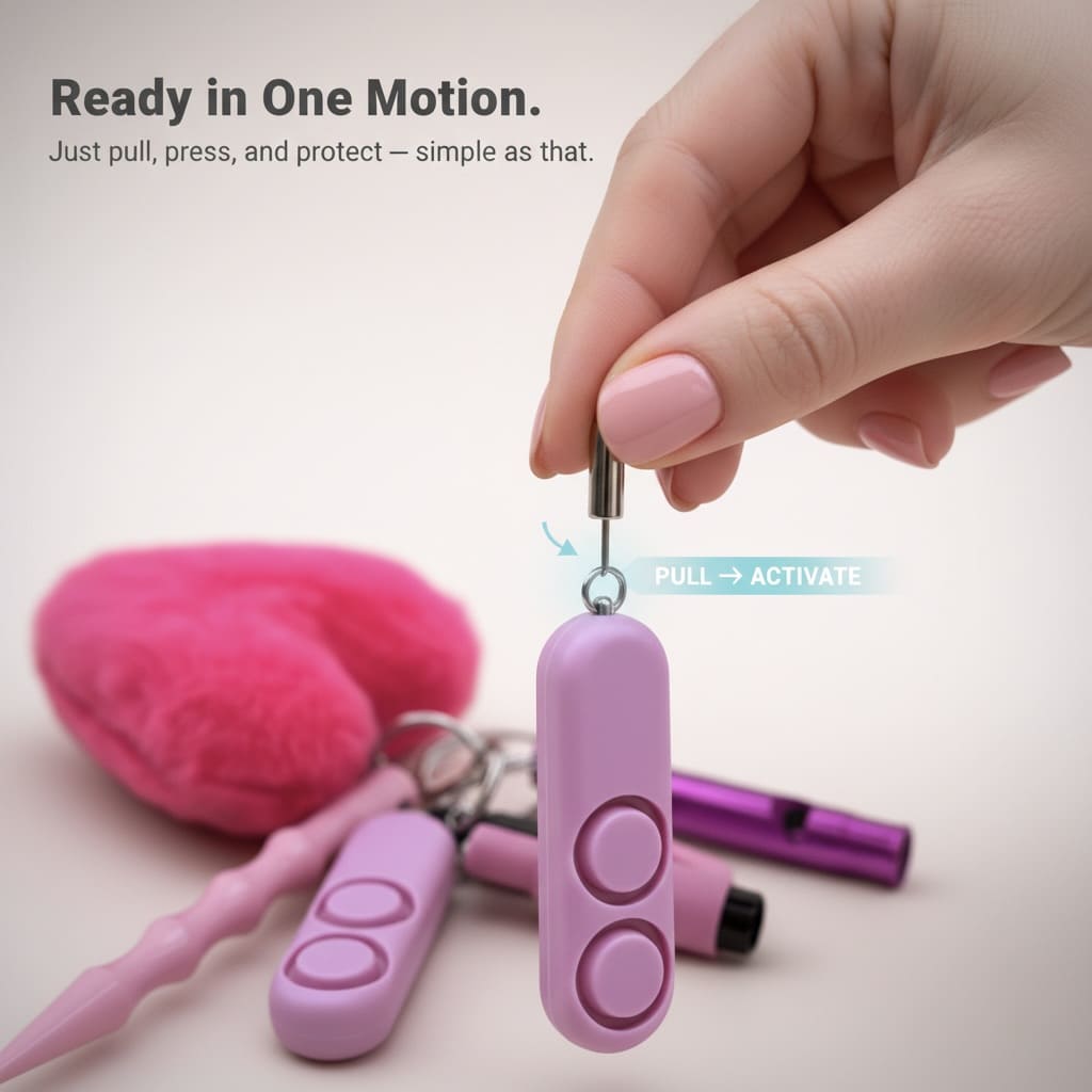 FemmaGuard isn’t a weapon. It’s a reflex. Designed to be intuitive even a child could sound the alarm in seconds.